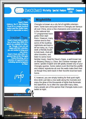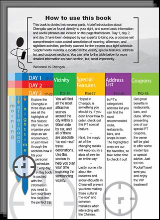 PocketTravel Chengdu is the first guide book of its kind to be introduced in China! It’s a convenient, easy to use guide that is filled with all of the information travelers need to maximize their vacation in China’s cities. Pocket Travel is designed to help travelers manage their vacation time with minimum effort while saving them money along the way.